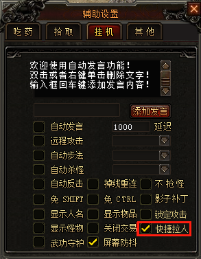 1、快捷拉人:辅助窗口内勾选快捷拉人选项